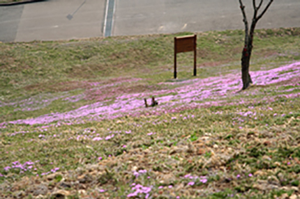 ハッカ畑近くの公園、芝桜がもう咲き始めました。