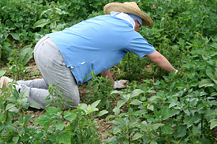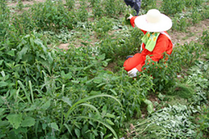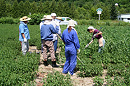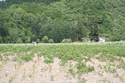 除草剤等は一切使用していないので雑草を丁寧に手作業で抜いていきます。