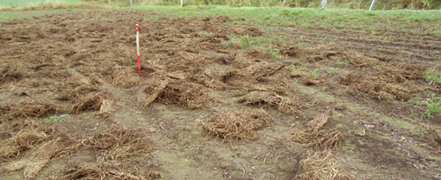 釜から取り出したハッカを畑に撒き肥料にします。 来年のハッカがよく成長しますように!