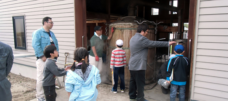 本日はハッカの蒸留作業です。 近隣の小学生たちが、蒸留見学&体験にやってきました。