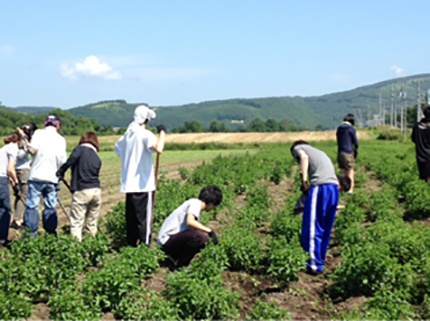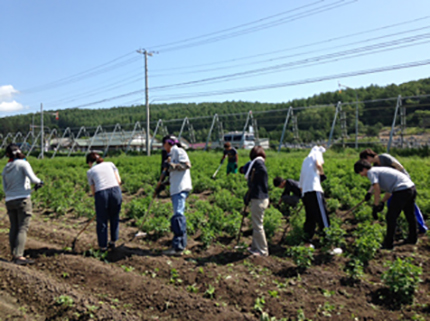 そして本日は、明治大学経営学部藤江ゼミの学生さんたちによる、畑作業の体験です。