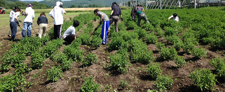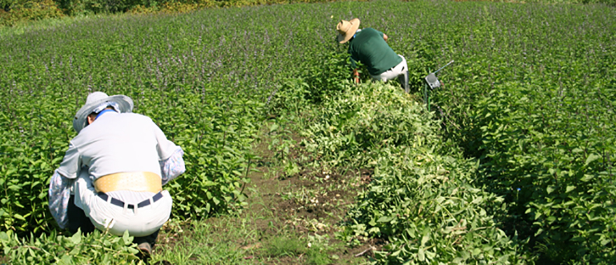 草取り作業もハッカの生育に関わる大切な作業です。 皆さん汗を流して、頑張ってくれました。